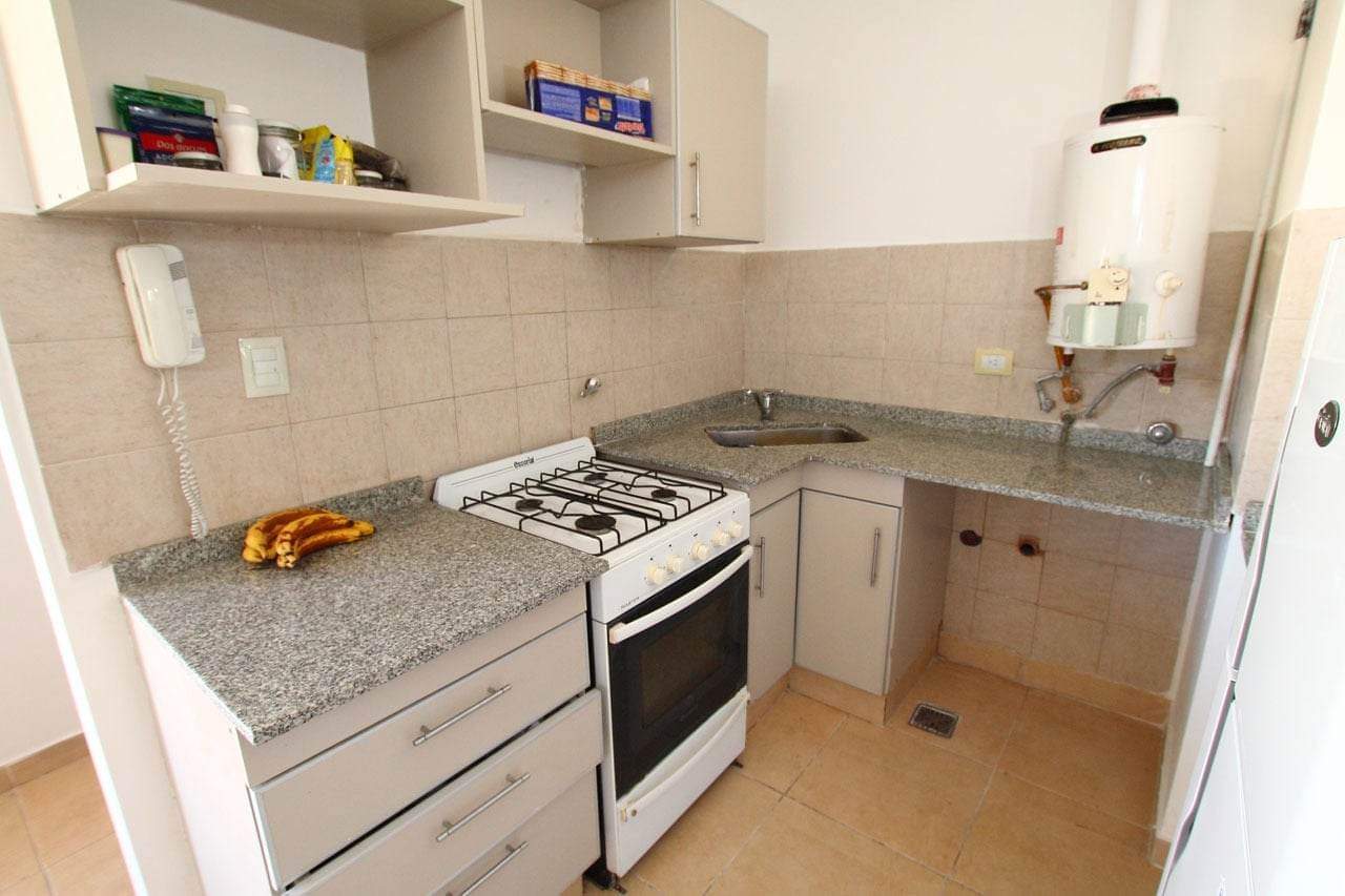 1 dormitorio con amplio placard, baño completo y ante baño; cocina con cocina, extractor y bajo mesada; 1er piso al frente; zona Hospital Nuevo; gas natural, pavimento.